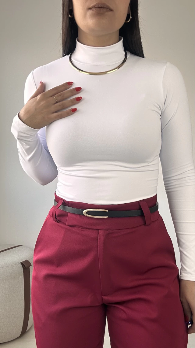 A nossa blusa Ágata vai fazer você se destacar com estilo e elegância em qualquer ocasião! Uma peça que toda mulher precisa ter em seu guarda-roupa por ser versátil e atemporal. Aliada para os dias frios, além de ser uma peça prática e aquela base ideal para compor todos os looks. Feita de poliamida com elastano de excelente qualidade, é uma peça estruturada, com gola alta, mangas longas, possui acabamento incrível trazendo um ar de elegância e sofisticação até nos looks mais simples.
