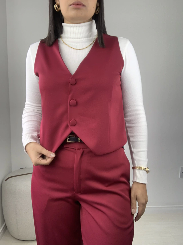 O colete curto em alfaiataria é a peça que vai elevar o seu estilo a um novo patamar! Feito em tecido plano de alta qualidade, ele tem forro duplo e estruturado, possui decote em V, três botões frontais e detalhes em frisos a verdadeira definição de elegância. O colete em alfaiataria é a peça tradicional que se tornou uma tendência versátil, indo bem em qualquer composição.
