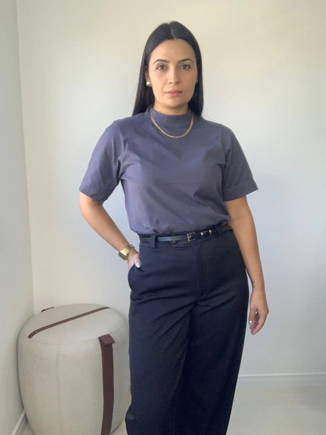 Uma peça que toda mulher precisa ter em seu guarda-roupa: a nossa t-shirt com gola alta. Com modelagem oversized ela oferece o acabamento soltinho e amplo, as mangas curtas 2/4 são sinônimo de conforto e estilo adicionando um toque de elegância casual a qualquer look. A Gola alta em ribanna sai totalmente do tradicional e a qualidade do tecido na malha 100% algodão que no toque é como se fosse um abraço.