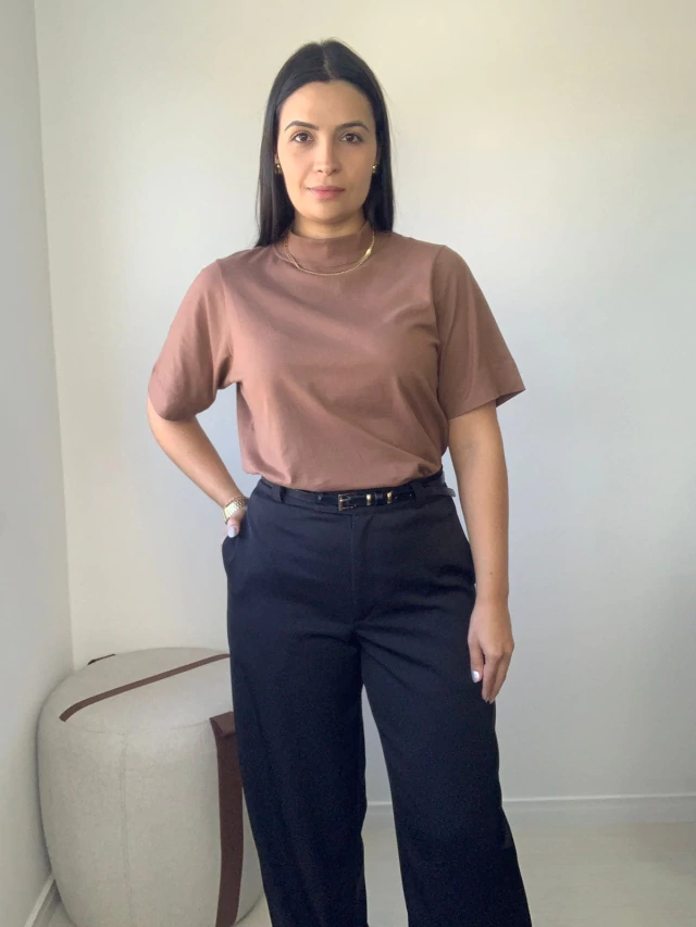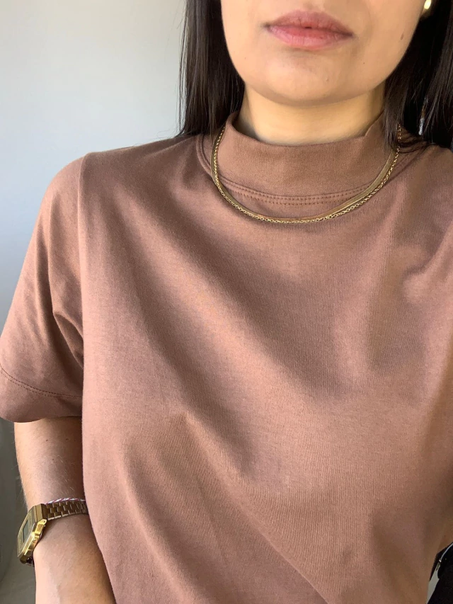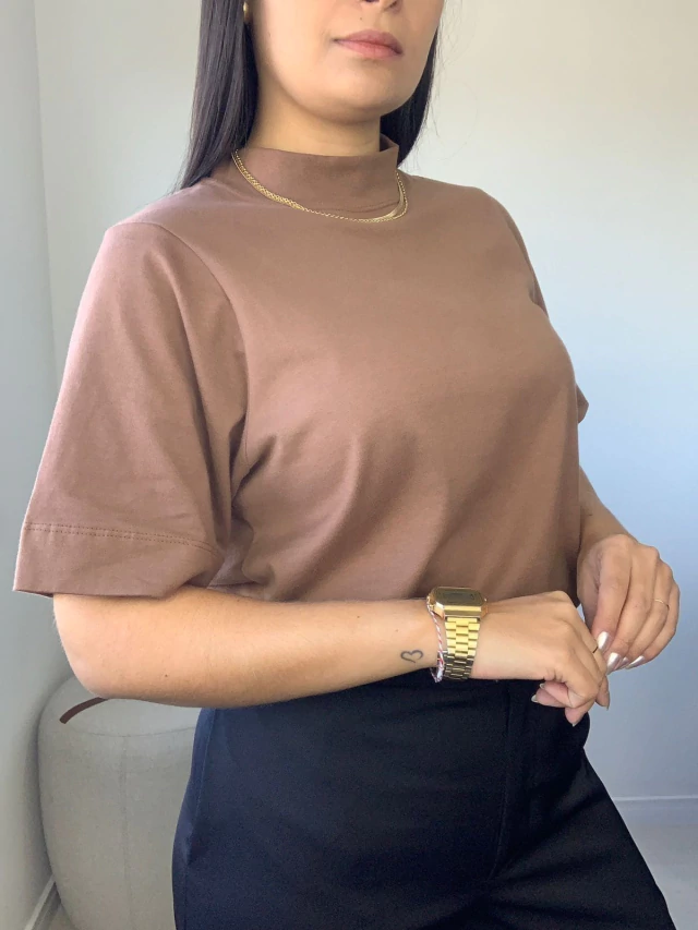 Uma peça que toda mulher precisa ter em seu guarda-roupa: a nossa t-shirt com gola alta. Com modelagem oversized ela oferece o acabamento soltinho e amplo, as mangas curtas 2/4 são sinônimo de conforto e estilo adicionando um toque de elegância casual a qualquer look. A Gola alta em ribanna sai totalmente do tradicional e a qualidade do tecido na malha 100% algodão que no toque é como se fosse um abraço.